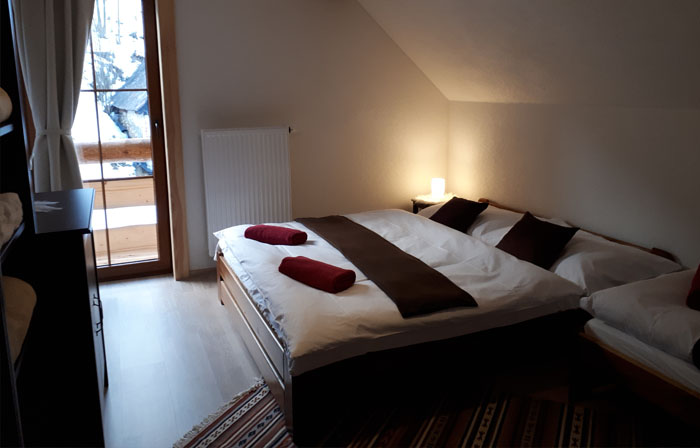 Kapacita 12 osôb. 4 izby - v každej izbe 1x manželská posteľ + 1 samostatné lôžko.